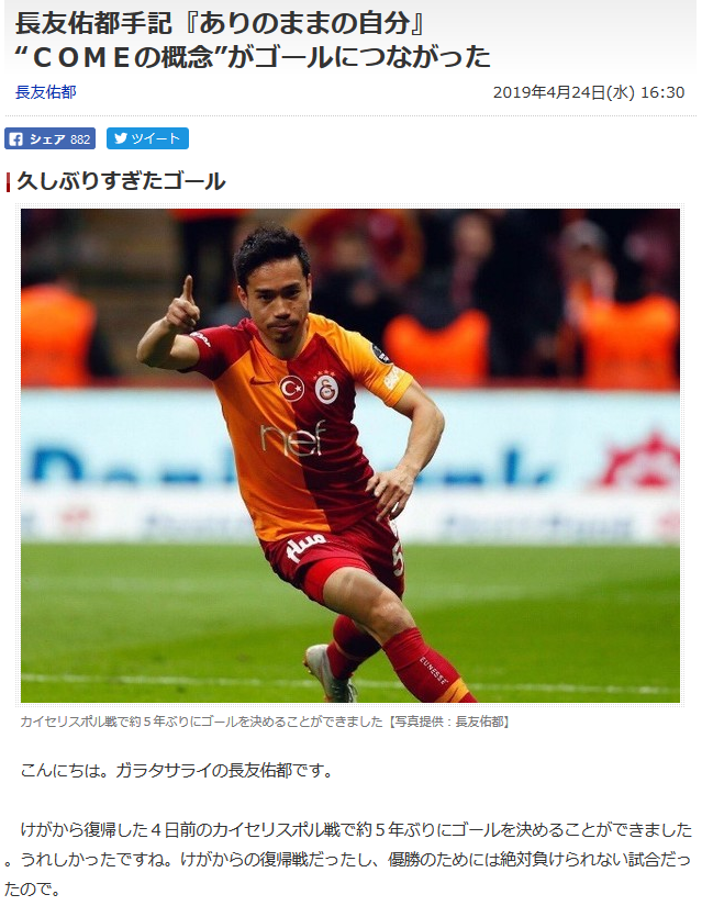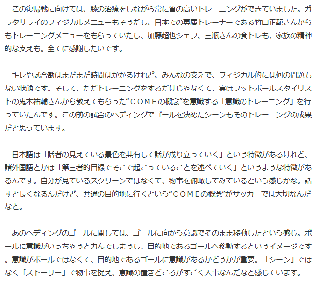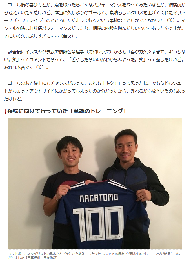 ■長友佑都手記『ありのままの自分』“COMEの概念”がゴールにつながった