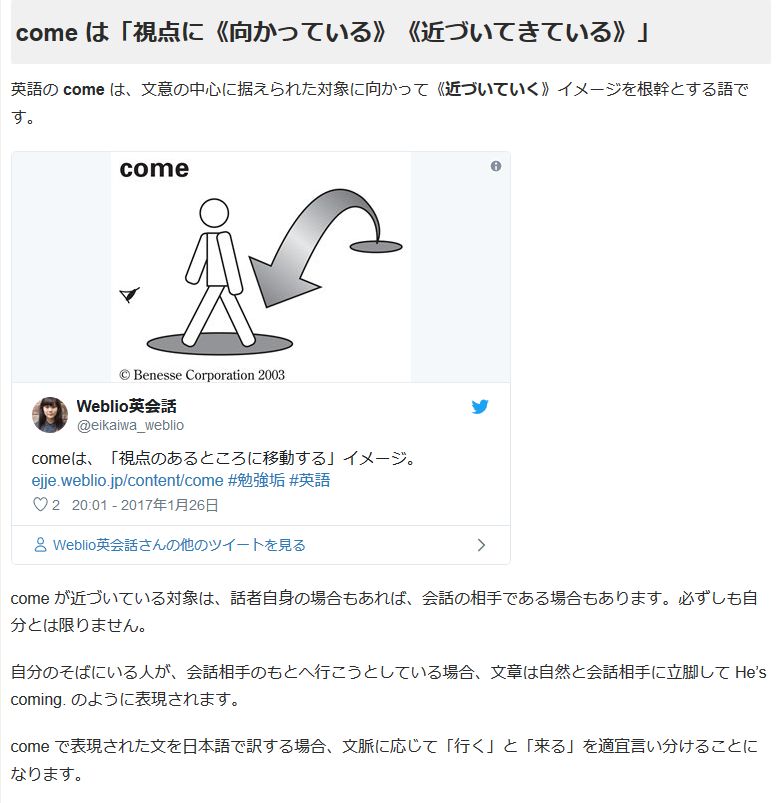 まず、“comeの概念”を確認しておきたいと思います。